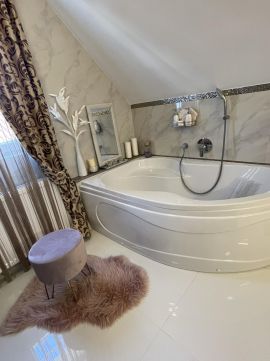 Egy közlekedőből nyílnak a hálószobák és a fürdőszoba is mely a zuhanyzásra és a kádas fürdésre is alkalmat nyújt