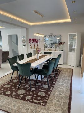 Viszont aki szereti a tágas tereket az a házba belépve egy hatalmas nappaliban találja magát melynek lenyűgöző mérete és letisztultsága, eleganciát, tisztaságot és barátságos , melegséget sugároz.