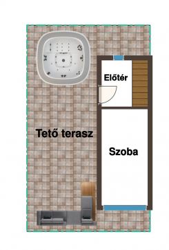 Tágas tetőterasz jakuzzival (6 személyes) tökéletes pihenésre vagy baráti összejövetelekre