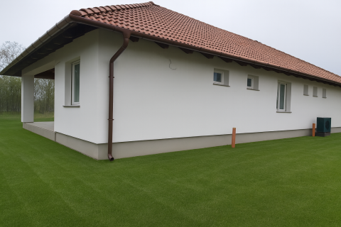Beton sávalapra épült, 30-as kerámia falazattal, kívülről 15 cm grafitos szigeteléssel.