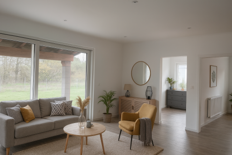 Nyílászárók: modern műanyag szerkezetek.