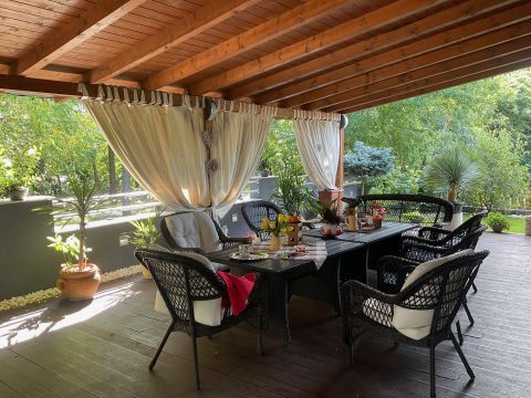 Szigethalom dunaparti részén eladó egy kivételes adottságokkal és műszaki tartalommal rendelkező, újszerű állapotú családi ház, amely tágas terekkel, hatalmas teraszokkal és saját stéggel kínál különleges életminőséget.
