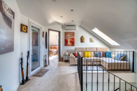 A nagy méretű, világos nappali terekből közvetlen kijárat nyílik a teraszokra, ahonnan páratlan dunai panoráma tárul elénk. Az ingatlanban összesen 4 fürdőszoba és 3 külön WC található, így akár nagyobb család számára is kényelmes és jól használható életteret biztosít.