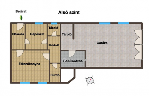 A ház elosztása kifejezetten tágas és jól átgondolt. Összesen 6 szoba áll rendelkezésre, valamint két külön szinten kialakított, teljes értékű konyha is megtalálható az ingatlanban, így akár kétgenerációs otthonként is kiválóan használható.
