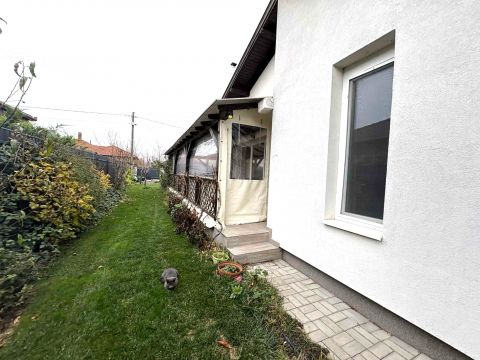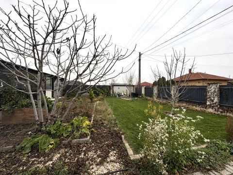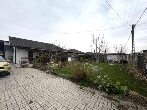 Délegyházán, nyugodt, természetközeli környezetben eladó egy 116 m²-es ikerházfél, amely semmilyen építészeti kapcsolattal nem rendelkezik a másik lakóegységgel. Az ingatlan kerítéssel teljesen elszeparált, a két ház között 6 méter távolság van, így valóban olyan érzetet kelt, mintha egy önálló családi ház lenne.