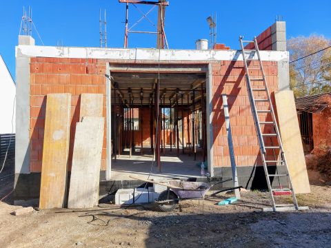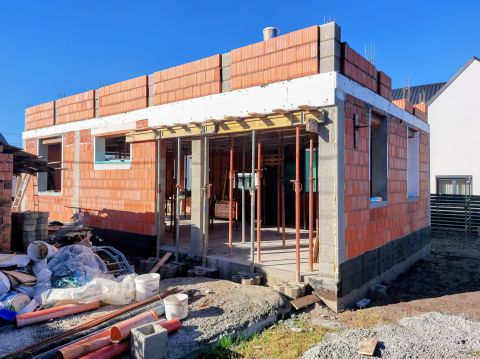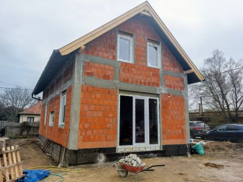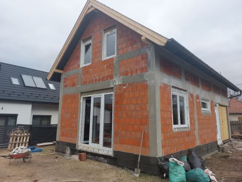 A ház korszerű építéstechnológiával készül: vasbeton sávalap, 30-as porotherm klímatégla falazat, vasbeton födém, 10 cm vastag aljzatbeton, alapozásnál és a lábazatnál 8 cm-es zártcellás hőszigetelés, homlokzati falon 8 cm-es grafitos polisztirol hőszigetelés. A vizes helységekbe kerámia burkolatok, a szobákba pedig laminált parketta kerül. Padlófűtés, energiatakarékos gépészet, hőszivattyú biztosítja majd az alacsony fenntartási költségeket.
