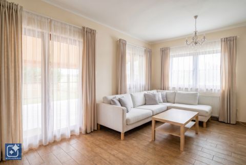 A nappaliból nyílik a parkosított kertre néző 30 nm-es fedett terasz, amely igazi kikapcsolódást nyújthat az egész család számára. De ha valakinek több szobára lenne szükség és szeretné bővíteni az ingatlant, akkor terasz teteje is szigetelt és az összes szükséges közmű kiállás megvan a teraszon, így kényelmesen, gyorsan beépíthető.