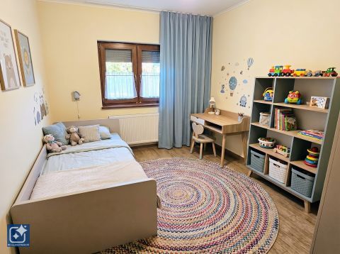 A saját részre épített ingatlan ikerház ahol a másik felet is a tulajdonos építette és a két dupla főfal között egy speciális hanggátló szigetelés van. A másik fele tükörképe ennek az ingatlannak és akár EGYBEN IS ELADÓ A 2 RÉSZ.