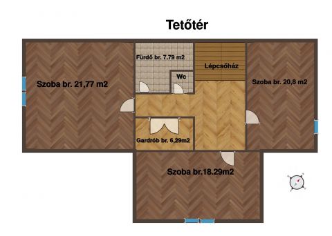 Az otthonban 4 hálószoba és egy dolgozószoba kapott helyet, valamint gardrób, kamra és külön gépészeti helyiség is szolgálja a praktikus mindennapokat.
