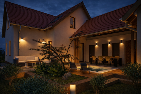 A kültér térkövezéssel és automata locsolórendszerrel kerül átadásra.
