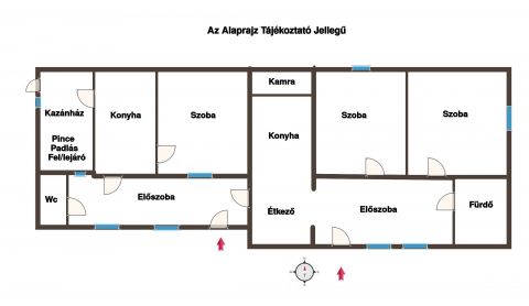 3 hálószobával, 2 konyhával, 1 fürdőszobával és egy külön WC-vel.