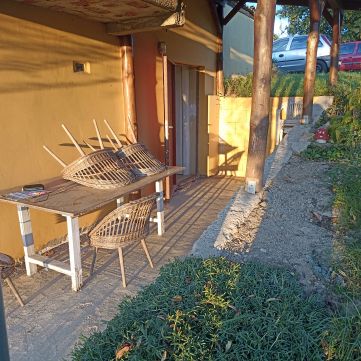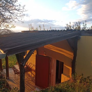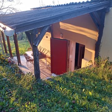 A telek szélessége 16 méter, hossza 262 m. A telken található egy tégla építésű, félig földben lévő, eredetileg pincének készült, de az átalakítások során egy szoba, konyha, fürdős, vízzel és villannyal ellátott kis épület. Fűtése jelenleg nincs, de a 32 Amper lehetővé teszi a klímás vagy a fűtőpaneles fűtési megoldást. A terület betonozott úton közelíthető meg, az utca felöl kapuval zárt.