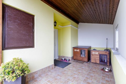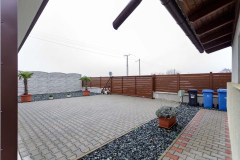 A hátsó bejáraton keresztül megközelíthető egy 35 nm-es, hangulatos fedett terasz,, ami tökéletes helyszín családi pihenéshez vagy baráti összejövetelekhez.