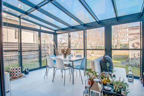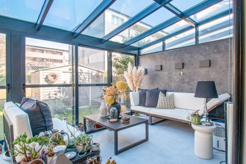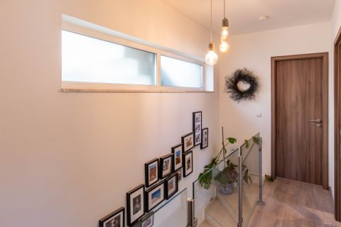 Az ingatlan 2015-ben készült,magas műszaki tartalommal és minőségi kivitelezéssel,amelynek a lakóterülete két szinten 94 nm,amelyhez tartozik egy 15 nm-es garázs és az udvaron,a viacoloros burkolattal ellátott részen két autó részére udvari beálló,illetve a ház udvari frontján található egy 27 nm-es terasz,amelyet a tulajdonosok egy zárható és fűthető télikertté varázsoltak.A ház alsó szintjén került kialakításra az előszobából belépve a kézmosós toalett és teljesen modern,egy légterű 35 nm-es nappali+amerikai konyha.A felső szinten három hálószoba,gardrób szoba és egy fürdőszoba található.