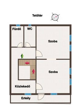 A tetőtér kialakítás alatt áll, a falak már vakoltak, így az új tulajdonos saját igényei szerint fejezheti be a felső fürdőszoba és wc, valamint a szobák kialakítását a hozzá tartozó erkéllyel.