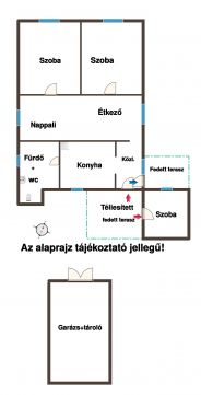 Téliesített, 12 m2-es teraszon keresztül jutunk be a házba, és egy 10 m2-es kisebb szobába is. A nappaliból a 8 m2-es fedett teraszra lépünk ki, ami a külvilágtól elszeparált, így a család részére meghitt beszélgetések, étkezések színtere lehet.