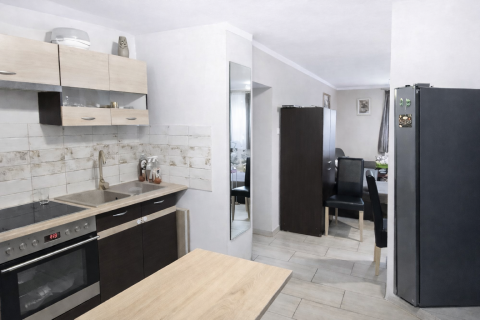 Lépjen beljebb ebbe a világos és ízlésesen felújított otthonba, ahol a nappali központi helyet foglal el, tökéletes teret biztosítva a családi és baráti összejövetelekhez. A konyha modern, minden szükséges géppel felszerelt, ahol az étkezések elkészítése igazi öröm lesz.