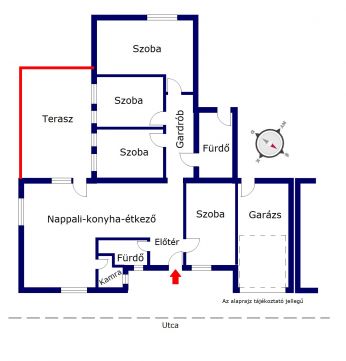 A bejárat közelében találsz egy nagy (13,16 nm)szobát, saját zuhanyzós fürdővel (ide elszállásolhatod a Nagyit, vagy akár ügyfeleket, vendéget fogadhatsz).