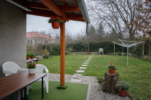 Az udvaron garázs is található egy terasszal.