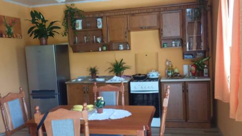 Tápióság központjának közelében eladó - akár 2 generációnak is alkalmas - 3 szoba + étkező/konyhás családi ház, mely akár további 3 szobával bővíthető . Az ingatlan összközműves, tehermentes és 1/1 tulajától akár 30 nap alatt birtokba vehető. A ház fűtése gázkonvektorral történik. A főépületben a fedett teraszon át vezet az út a nappaliba, ahonnan balra egy nagy szoba és jobbra egy másik nappali szoba nyílik + kamra, továbbhaladva pedig a konyha/étkezőbe jutunk, ahonnan a fürdő/wc és egy padlásfeljárós tároló található. A főépület mellett 3 tároló épült, mely akár  összenyitható a mellette lévő ingatlanokkal.,  ami egy teljesen különálló nagy szobából áll + külön bejáratú épülettel összekötve még 1 szoba + konyha található(alatta pincével). A ház mellett egy nagy nyitott rész is található (amely garázsként is használható). Az építményben a szobák ablakai kicserélésre kerültek, valamint új bejárati ajtó is beépítésre került. A konyha/étkezőbe új laminált padló lett és az egyik nappali szobába valamint a nagy szobába a burkolat is kicserélésre keült. A tetőtér megerősítése is folyamatban van (ehhez alapanyagokat tud adni az eladó), valamint a fedett terasz szélén található fal ytonggal való átépítése. A konyhabútor az ár részét képzi.