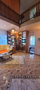 Az ingatlan különlegessége a kovácsoltvas korláttal díszített fa lépcső, amely elegáns megjelenést kölcsönöz a belső térnek. A keretesházas övezet nyugodt, családbarát környezetet biztosít, ugyanakkor a közlekedés autóval és gyalogosan is kiváló.