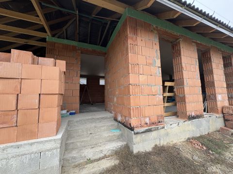 A falazat 30 cm Porotherm, a válaszfalak 10 cm Ytong, a homlokzati szigetelés 15 cm, a födémszigetelés 25 cm, a tető antracit betoncserép, a homlokzat fehér. Háromrétegű műanyag nyílászárók és minőségi bejárati ajtó kerül beépítésre.