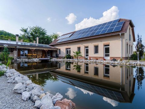 A birtok szinte teljesen önellátó: a villamos energiát 15,4 kW-os napelempark biztosítja, a melegvizet 5 db napkollektor segíti, a hőszivattyúval működő fűtés és mennyezeti hűtés pedig szobánként szabályozható és távolról is vezérelhető. A biológiai szennyvízkezelés és az ivóvíz-minőségű saját kút minimális rezsiköltséget garantálnak.