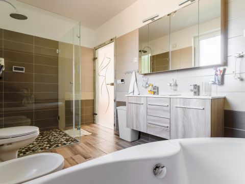 A ház minden részlete prémium minőséget képvisel: háromrétegű üvegezés, elektromos redőnyök, központi porszívó, mozgásérzékelős világítás, 3 kandalló, kamerarendszer, digitális biztonsági megoldások.