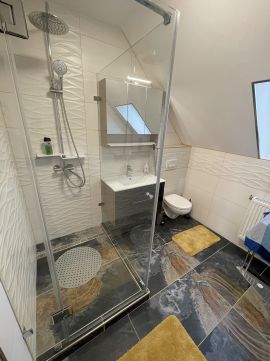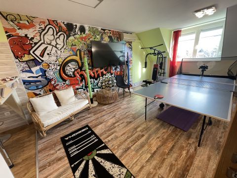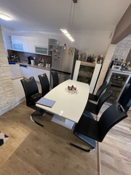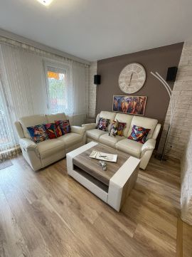 A felújítás során kiemelt figyelmet fordítottak a minőségi anyagok használatára, és arra, hogy a belső terek luxus érzetét keltés mellett is praktikusak maradjanak. A terasz a nappaliból nyílik innen közvetlenül a kertbe léphetünk ki, ami kiváló helyszínt biztosít a családi és baráti összejövetelek számára.A felújítás srán 10 cm-es dryvit került a külső falakra