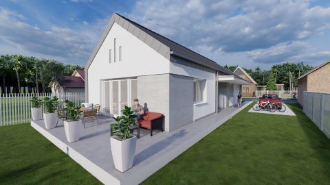 A gépészeti helyiség a háztartási helyiségben lesz, a kültéri egységet a nappali hátsó udvar felöli oldalára