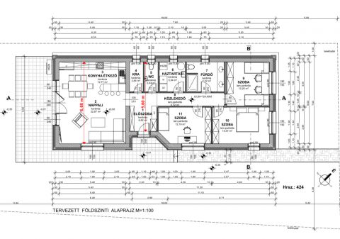 Terv ±0,00 pontja: az épület 0,00 padlószintje 124,80 mBf