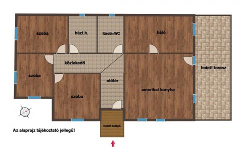 Elrendezés: nappali + 4 hálószoba