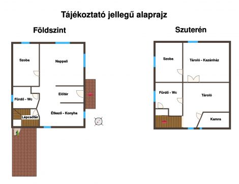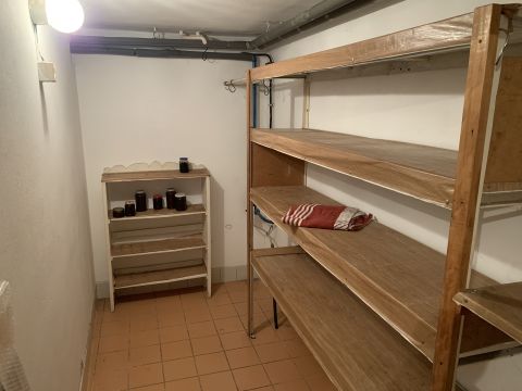 A 51 négyzetméteres szuterén szinten két tároló található, melyek egyikében vegyes tüzelésű kazán és gázkazán is helyet kapott. Ezen a szinten található még egy kamra, egy lépcső alatti tároló, valamint egy fürdőszoba WC-vel, amely akár mosókonyhaként is funkcionálhat. Itt kapott helyet a gázbojler, amely a melegvíz-ellátásért felel. Az egyik helyiségben vízkiállás is rendelkezésre áll, így akár konyha kialakítása is lehetséges. Bár a szuterén szinten jelenleg nincs fűtés, a fűtéscsövek itt futnak, ezért radiátorok felszerelése könnyedén megoldható.
