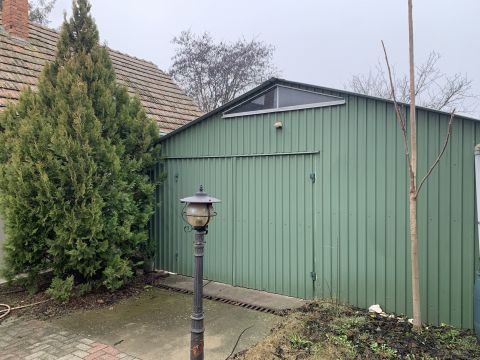 Az 518 négyzetméteres, összközműves telek viakolorozott és parkosított, az udvarban fúrt kút található. A viakolorozott bejáró mellett egy 35 négyzetméteres lemezgarázs és tároló kapott helyet, mögötte külön fatárolóval.