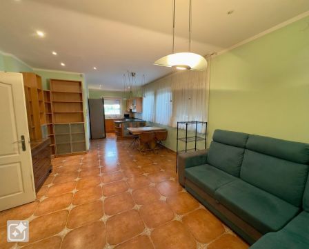 Földszint: amerikai konyhás nappali, három külön nyíló szoba, fürdőszoba, előszoba beépített szekrénnyel, valamint közvetlen kijárat a teraszra és a szépen parkosított előkertbe. Innen érhető el az autóbeálló és az elektromos kapuval ellátott utcafront.