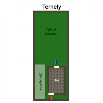 A telek mérete: 728 m² (gáz, villany, központi fűtéshez szükséges infrastruktúra és csatorna elérhető).