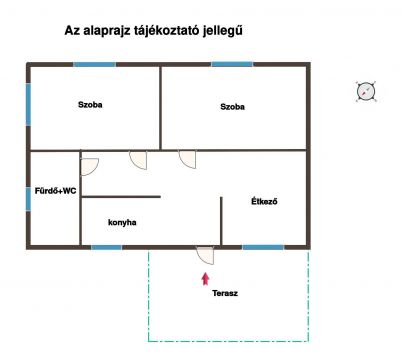Az épület stabil alapokra épült, vegyes falazatú. A praktikus elrendezésű ingatlanban két különnyíló szoba, közlekedő, konyha étkezőrésszel, valamint fürdőszoba és külön bejáratú WC került kialakításra.