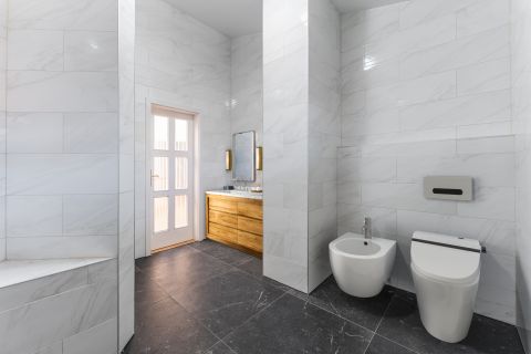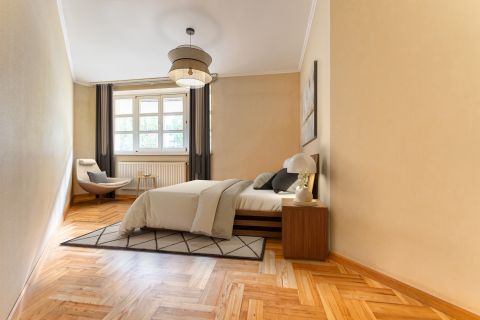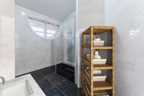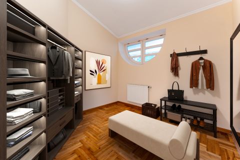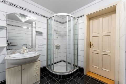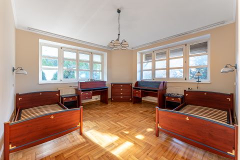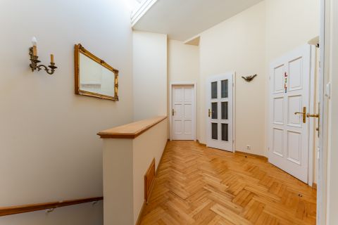 Az elegáns márvány burkolatú lépcsőt egy hatalmas tetőablak világítja meg az emeletre vezető szakaszon. Az emeleten három tágas hálószoba, egy gardróbszoba és fürdőszoba biztosítanak helyet az egész családnak vagy vendégeknek.