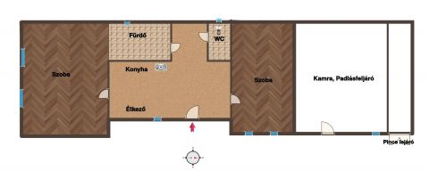 A 48 m²-es kis lakóház egy fal megnyitásával könnyen 74 m2-es lakóházzá is átalakítható..