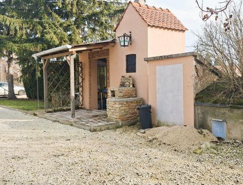 10 m²-es különálló melléképület kemencével a főépülettel szemben