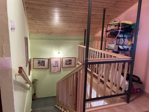A tetőtérben két szoba, fürdőszoba és konyha található, ahonnan egy tágas terasz nyílik.