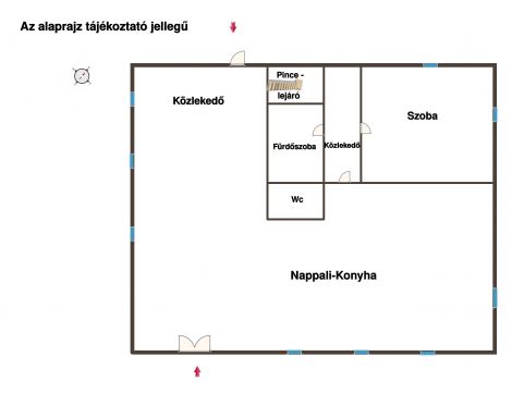 Az ingatlan elrendezése: amerikai konyhás nappali, egy szoba, fürdőszoba és külön WC.