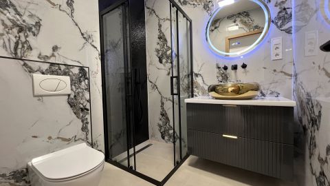 A lakás padlófűtését energiatakarékos hőszivattyú biztosítja, és minden szobában a legmodernebb hűtő-fűtő klímák találhatók. Három rétegű hőszigetelt nyílászárók kerültek beépítésre, melyeket PRÉMIUM, beépített, motoros zsaluziákkal árnyékolhat.