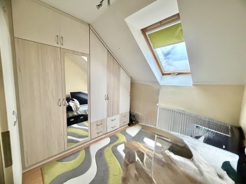 A lakáshoz gardrób és pakolható, járható padlástér is tartozik hatalmas előny nagyobb családnak, vagy annak, aki szeret mindent átláthatóan rendszerezni.