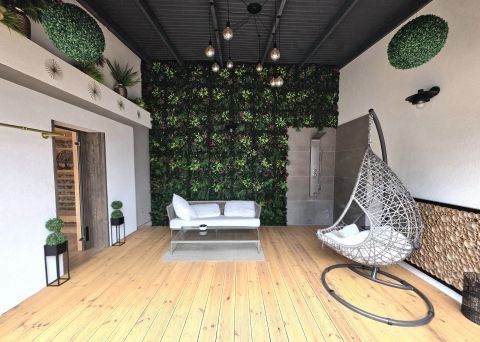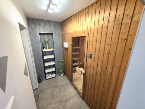 * Finn szauna és sófalas pihenőtér a nyugalom szigete, a fotókon látható természetes fa burkolatokkal