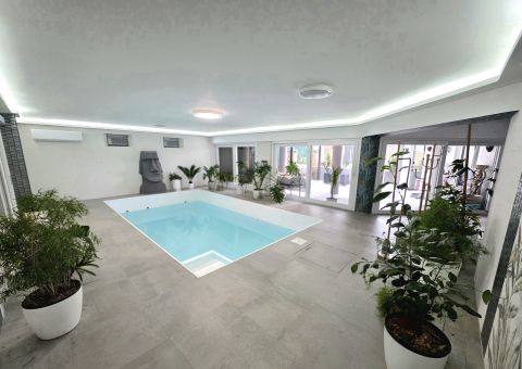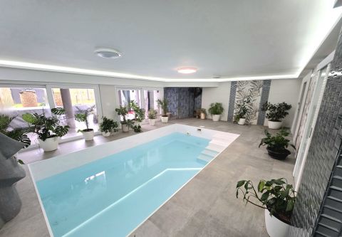 * Látványos beltéri medence tágas térrel, hangulatos LED világítással és elegáns burkolatokkal