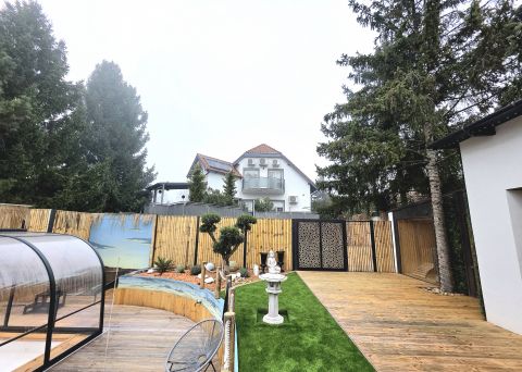 Az 1990-es években épült, 475 m²-es, minden részletében prémiumra hangolt luxusingatlan, amely egy 1091 m²-es, igényesen parkosított telken kínál páratlan életteret. Az otthon 2021-2025 között teljes körű felújításon esett át, így gyakorlatilag egy újépítésű színvonalú, korszerű technológiákkal felszerelt rezidenciát kínál.
