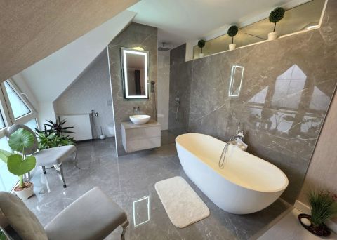 * Igényesen kialakított, nagy méretű hálószobák modern burkolatokkal és elegáns textíliákkal.Tágas nappali és közösségi terek!