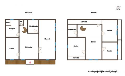 - az emeleti szinten 3 hálószoba található és egy fürdőszoba wc-vel