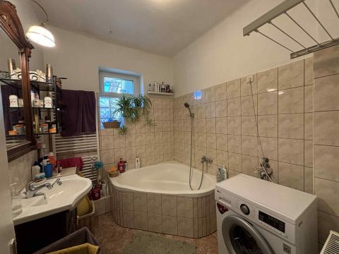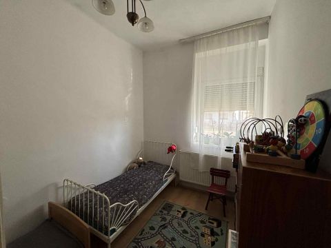 Az ingatlan elosztása jól átgondolt, jelenleg 2 lakrészként funkcionál: 33nm az első lakrész, ahová egy szélfogón keresztül jutunk be, található itt egy konyha+ étkezővel, egy fürdőszoba illetve egy hálószoba. Igény szerint egybenyitható a nagyobb lakrésszel.